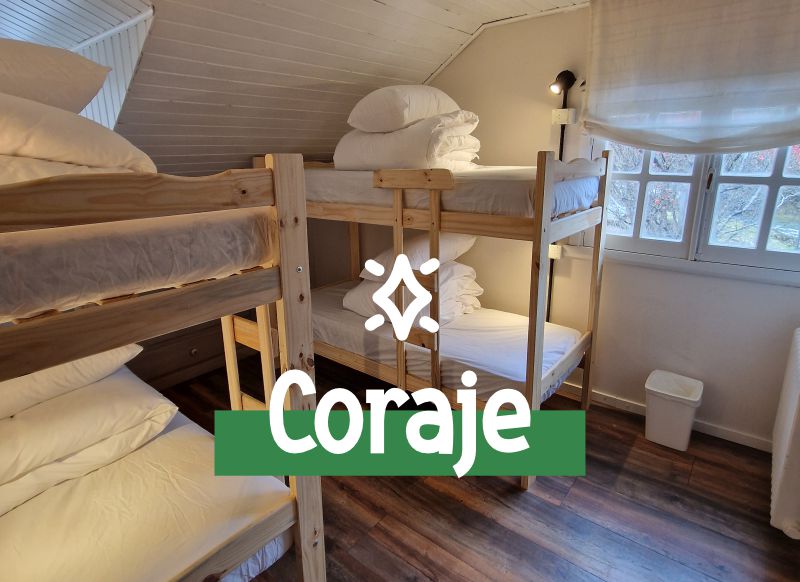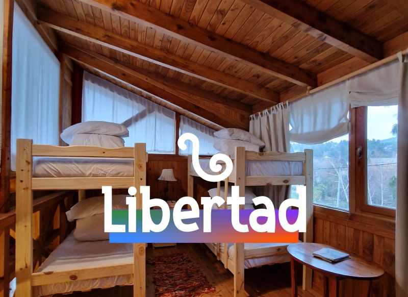 Habitación quíntuple compartida, con baño privado dentro de la habitación. Espacio cálido y luminoso con vista a la montaña. Cuenta con dos cuchetas y una cama simple. Es un amplio dormitorio que asegura la comodidad. Calefaccionada.