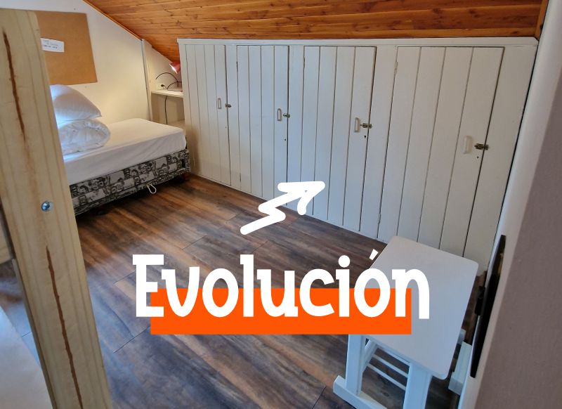 Habitación cuádruple compartida luminosa en planta alta. Ventilación cruzada y calefaccionada. Armoniosa y con espacio de guardado. Cuenta con 2 cuchetas y baño compartido en la misma planta.